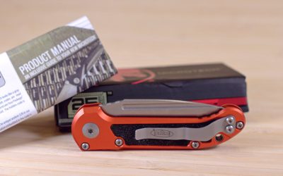Материал рукояти — стальные лайнеры, алюминиевый корпус и накладки из микарты.